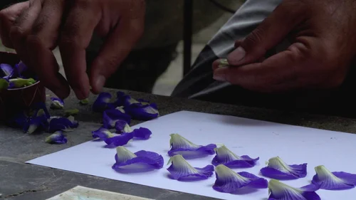 Featuring Balinese painter Made Griyawan, this light-hearted piece captures the process of the artist making ink out of flowers right from his backyard garden.